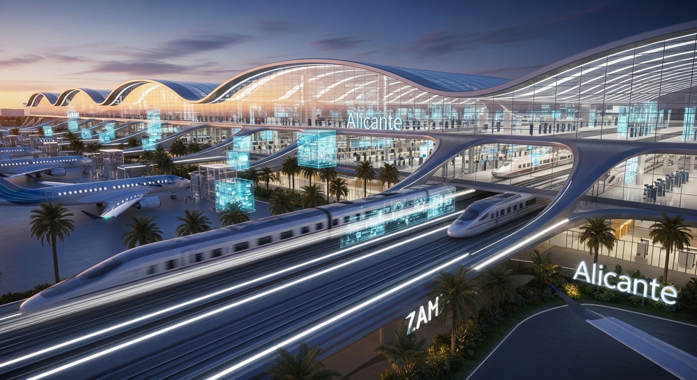 آج 21 اپریل 2026 کو سپین کی وزارتِ نقل و حمل نے الیکانتے-ایلچی ایئرپورٹ (Alicante Airport) کو ایک عظیم الشان "میڈیٹیرینین ریل ہب" میں تبدیل کرنے کے منصوبے کا باضابطہ آغاز کر دیا ہے۔